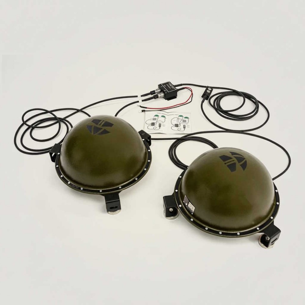 Модули монтируются на крышу или площадку техники с использованием магнитных опор, без доработки кузова. Питание подаётся от штатной бортовой сети 12/24 V, управление выносится в салон на удобную кнопку или пульт. Конструкция и корпуса разработаны с учётом работы в пыли, дожде и перепадах температур, поэтому комплекс подходит для регулярной эксплуатации в полевых выездах, на грунтовых дорогах и учебно-боевых выходах.